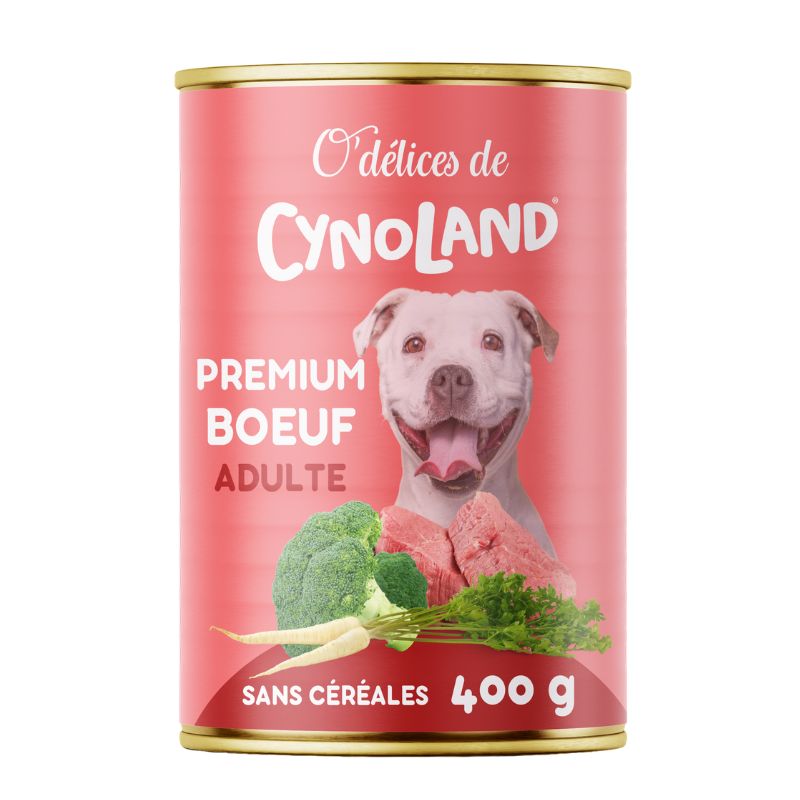 PREMIUM Bœuf Chiens Adultes O’Délices de Cynoland est un aliment humide complet pensé pour répondre aux besoins nutritionnels quotidiens des chiens adultes, en offrant une formule riche en viande de qualité et en légumes sélectionnés.